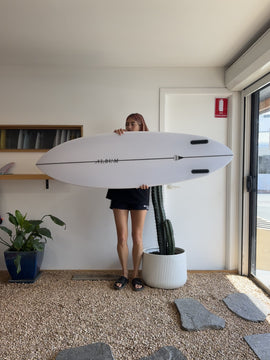 The perfect combination of Twin fin flair and shortboard dependability. Features modern rails with a shortboard foil through the nose and tail and a performance rocker. The narrow outline provides speed and drive, while the deeper bottom contours allow this board to be pushed without worry of sliding out. Ride it the same length as your shortboard, with slightly more volume.